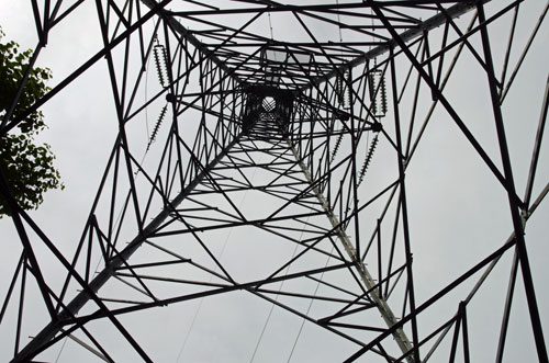 やがて道は鉄塔の下を通過する。時刻は 9時31分。 なお、道の所々に 特種東海製紙/東海フォレスト が、