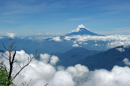 光岳の右に尖って見える山は、恐らく茶臼岳であろう。