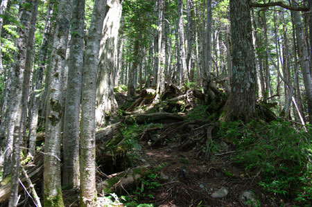 光岳に向かって再び徐々に盛り上がっている。