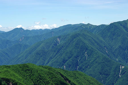 不動岳の右には信濃俣の双耳峰。