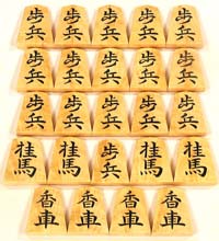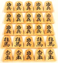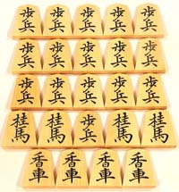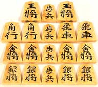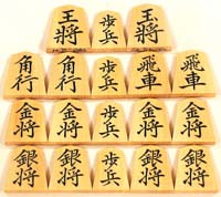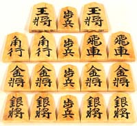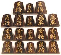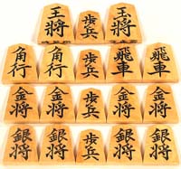 Pieces " Kaki-goma " (The calligraphy is painted on the surface of the Pieces.) " Hori-goma " (After the calligraphy is engraved into the wood, a coating of lacquer is applied.) " Horiume-goma " (After engraving the calligraphy into the surface of the Shogi Pieces, lacquer is put into the engraved space up to the surface of the wood.) (The Shogi Pieces comes with a Shogi Pieces Box.) |
