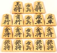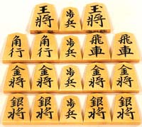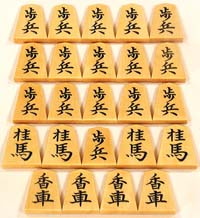 Pieces " Kaki-goma " (The calligraphy is painted on the surface of the Pieces.) " Hori-goma " (After the calligraphy is engraved into the wood, a coating of lacquer is applied.) " Horiume-goma " (After engraving the calligraphy into the surface of the Shogi Pieces, lacquer is put into the engraved space up to the surface of the wood.) (The Shogi Pieces comes with a Shogi Pieces Box.) |