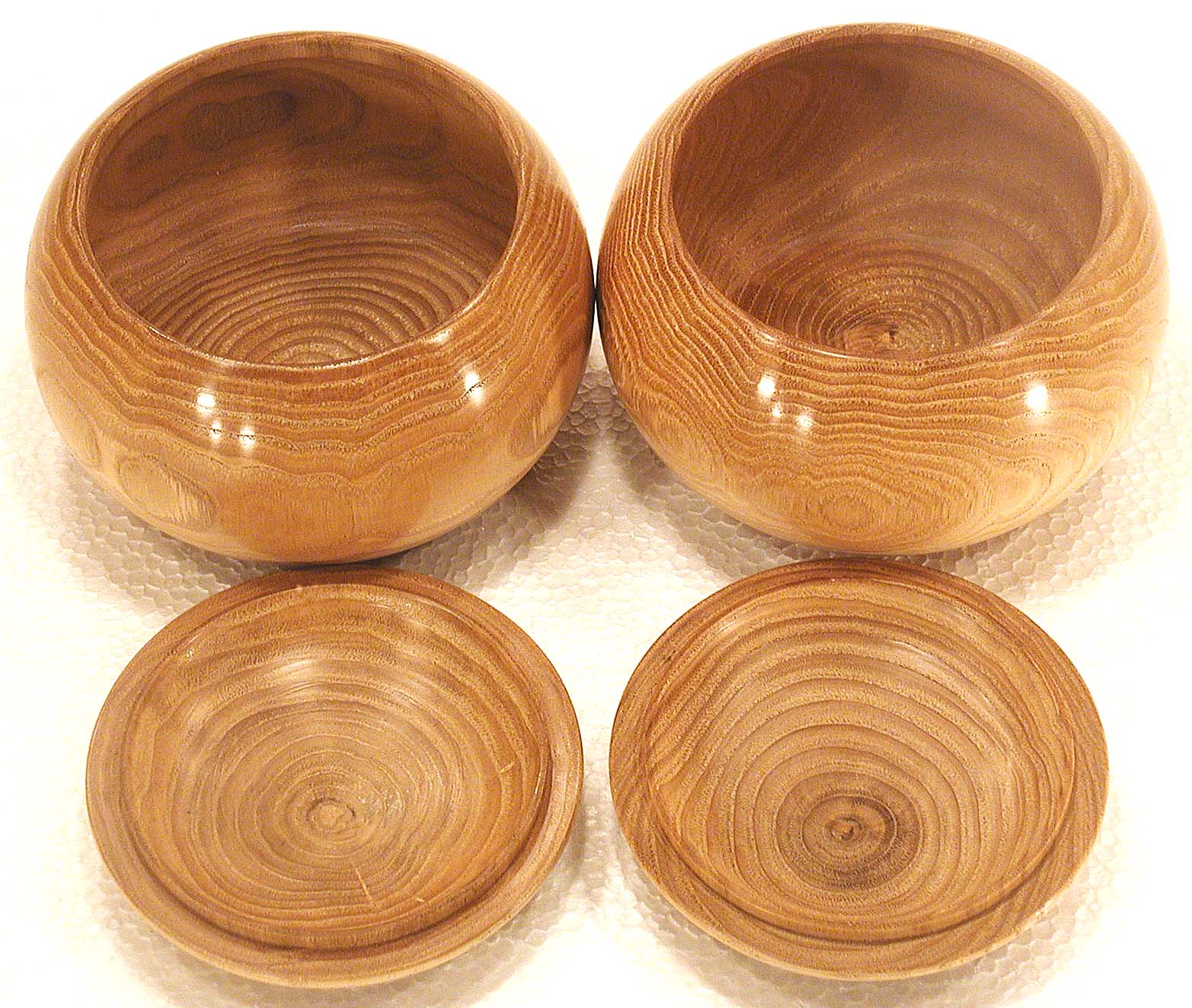 (B)KURI (Castanea crenata) with light color(Extra Large size) This bowls can only hold stones with a thickness of up to 10,1 mm.( Clam Shell Go Stones/36size ) Go bowls, or go-ke are the containers for the stones. Although not strictly needed to play Go, bowls nevertheless play an important role in storing the stones, and captured stones can be placed on the lids. Bowls are identical, with one holding the white stones and one holding the black stones. 7,800 JPY |
