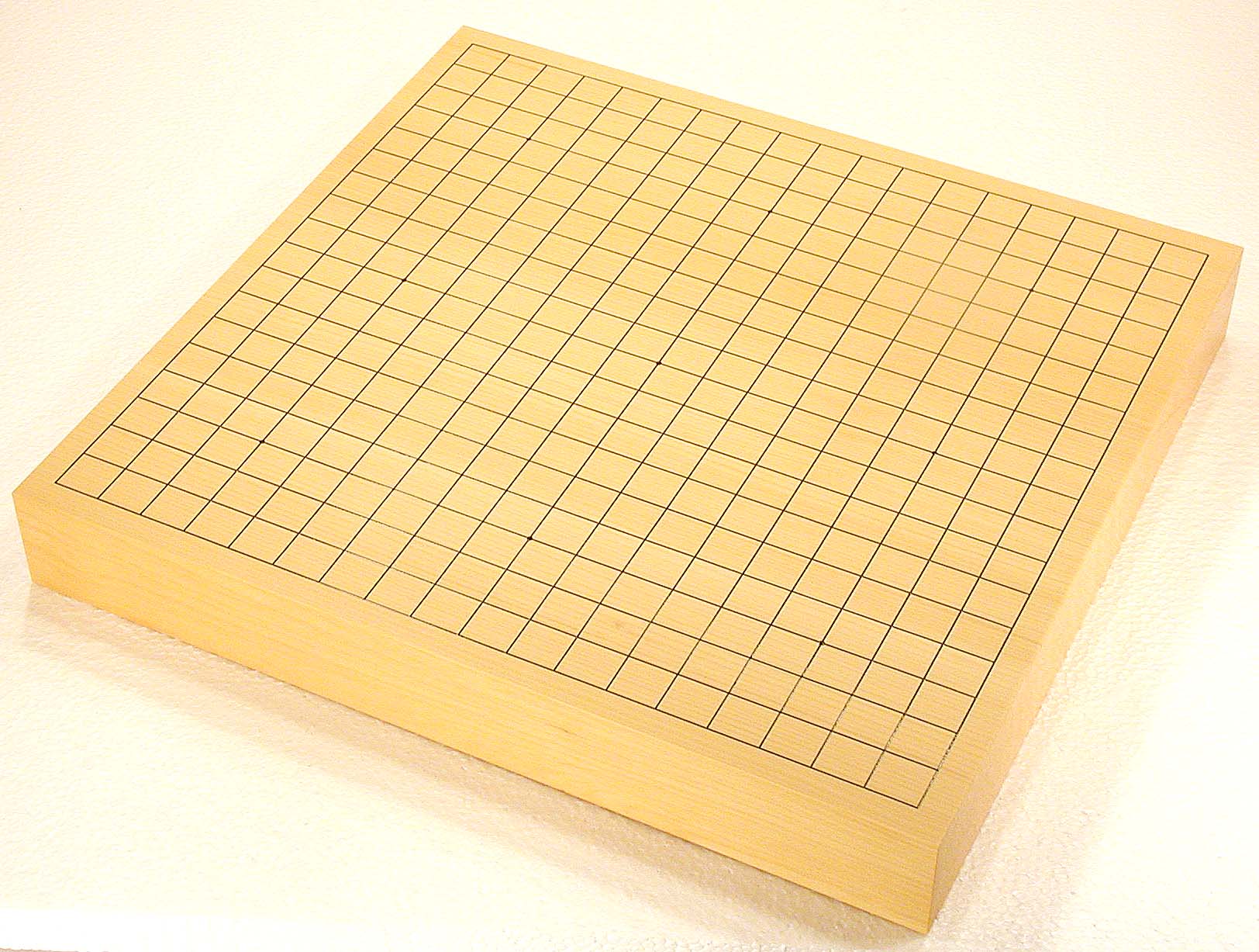 No.883:Torreya nucifera (KAYA) Table Go Board, 2-sun (6 cm thick of the board) Basic grain descriptions and types include: "MASAME" straight - grain which runs in a single direction, parallel to the axis of the tree. This is some pieces composition board. The most valued boards are made from "kaya", which is a mellow yellow. Front |