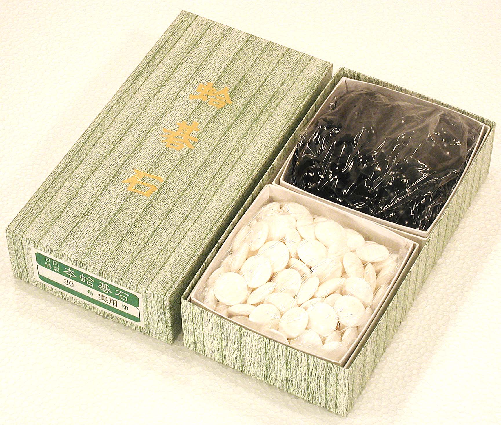 Standard Grade (JITSU-YO)/Size 30 Thickness of clamshell stone is 8.0mm. All clamshell stone sets includes black stones, as well, which is made from Nachiguro slate stone. 38,000 JPY |