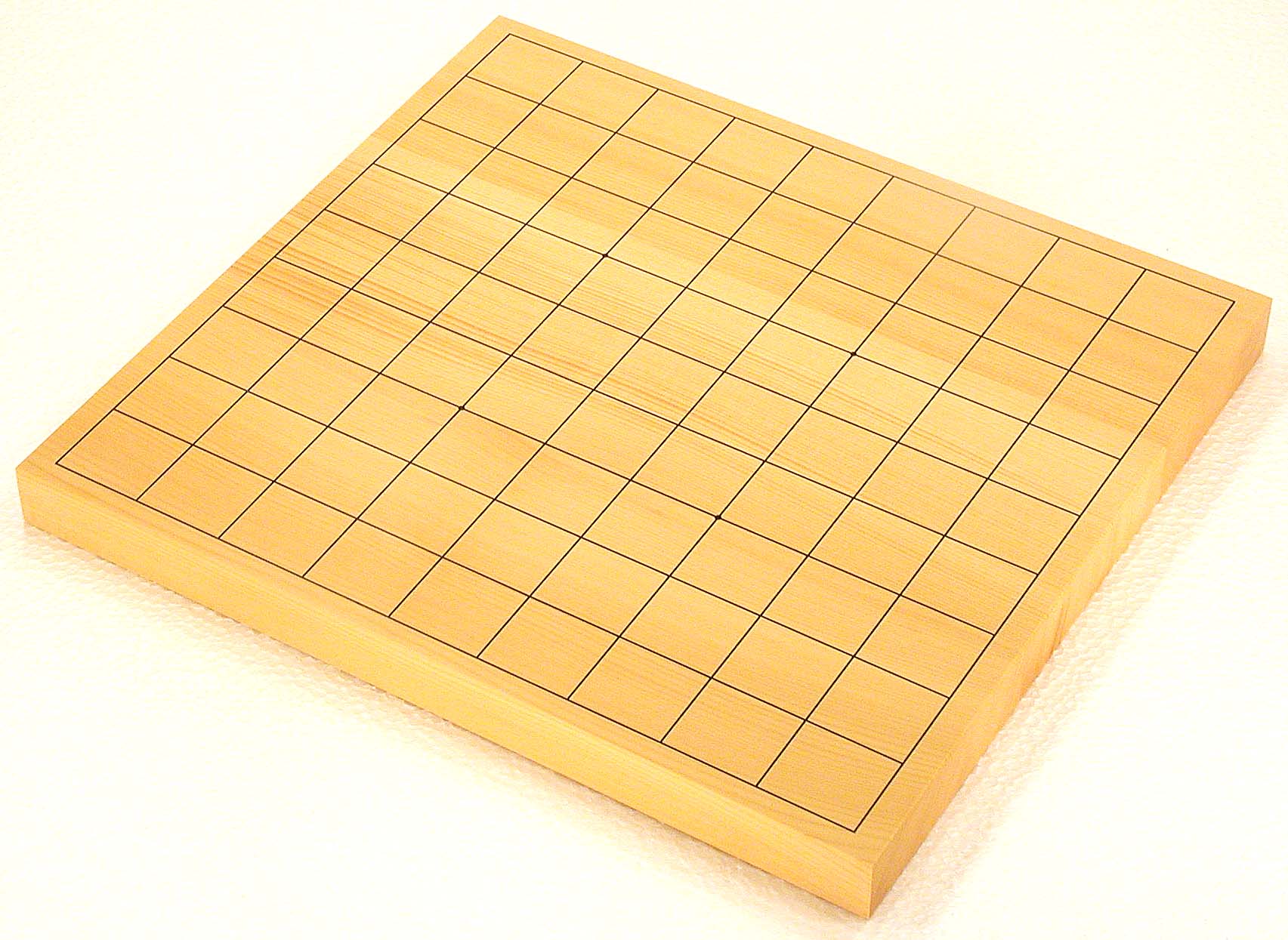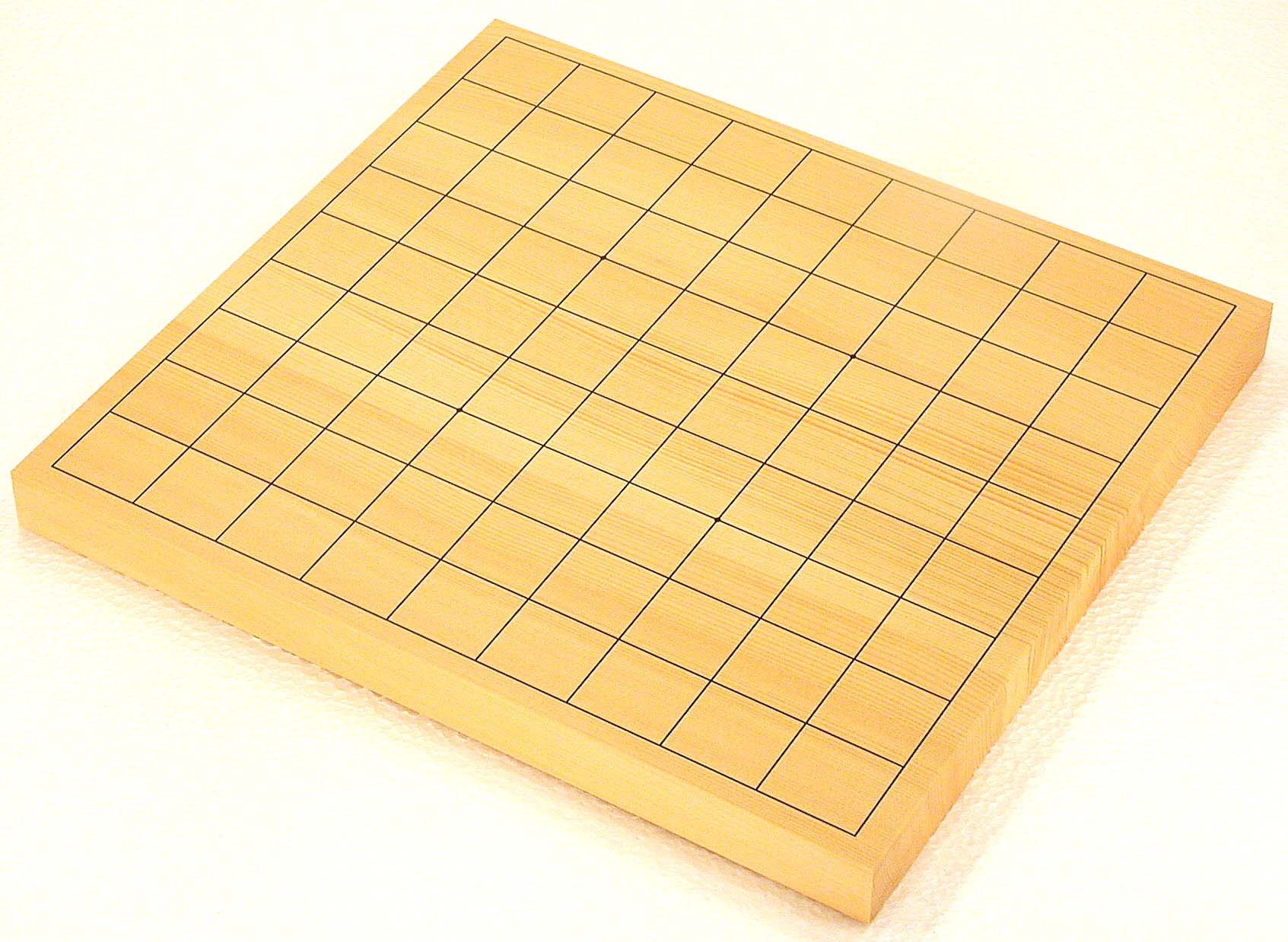 No.590:Torreya nucifera (KAYA) Table Shogi Board, 1-sun (3 cm thick of the board) Basic grain descriptions and types include: "MASAME" straight - grain which runs in a single direction, parallel to the axis of the tree. This is some pieces composition board. The most valued boards are made from "kaya", which is a mellow yellow. Front |
