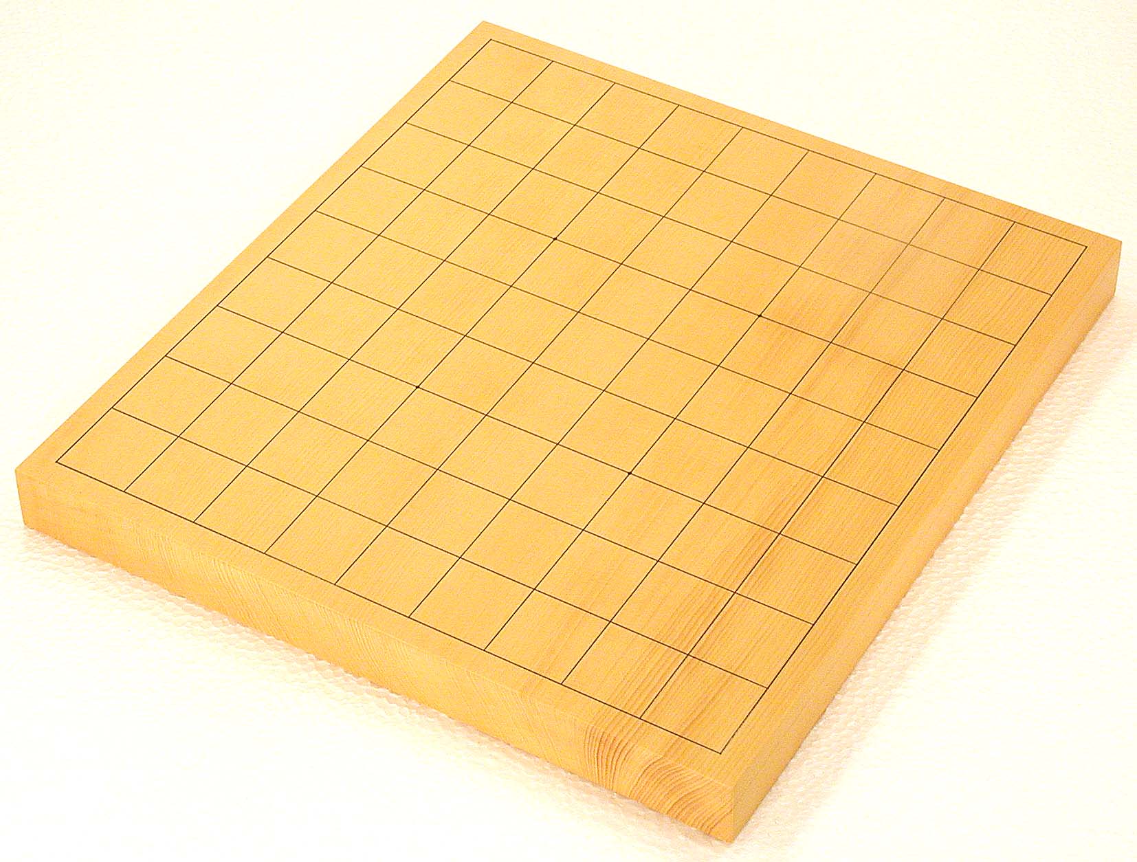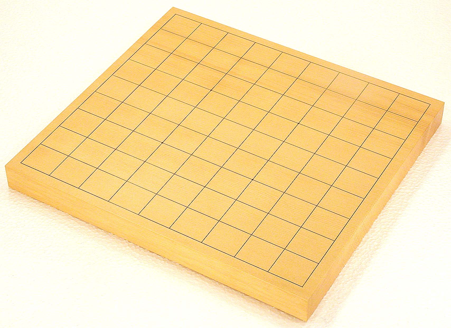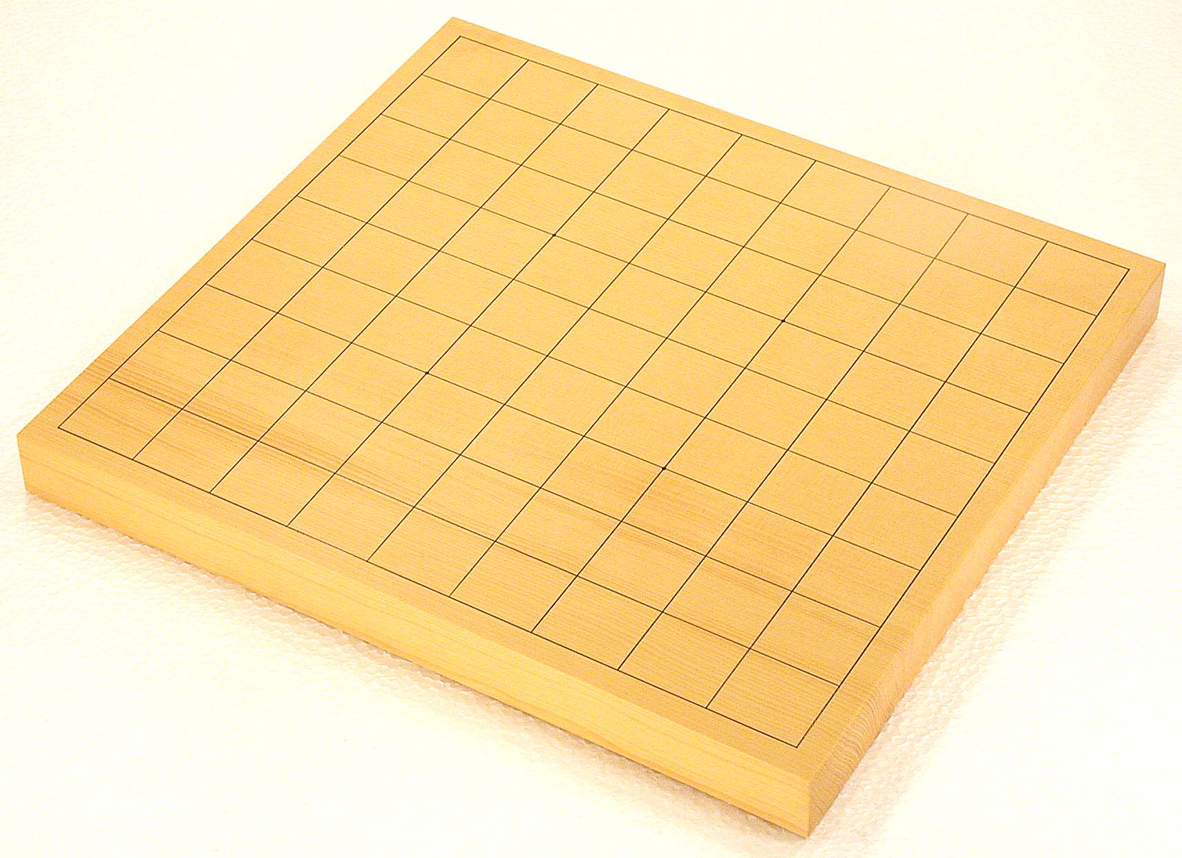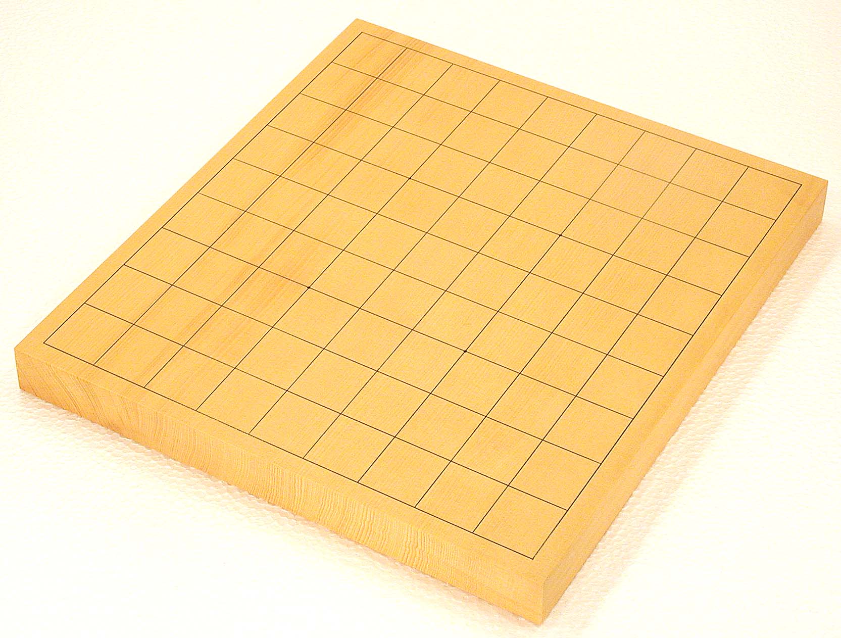 No.593:Torreya nucifera (KAYA) Table Shogi Board, 1-sun (3 cm thick of the board) Basic grain descriptions and types include: "MASAME" straight - grain which runs in a single direction, parallel to the axis of the tree. This is some pieces composition board. The most valued boards are made from "kaya", which is a mellow yellow. Front |