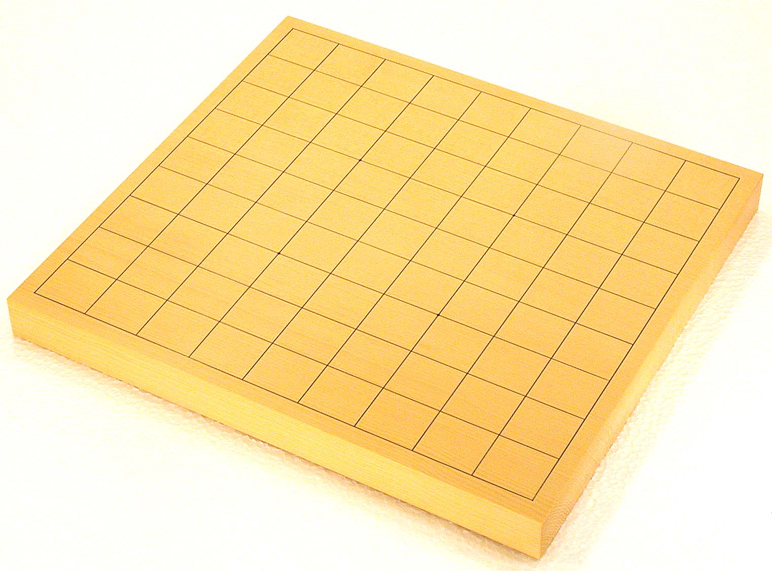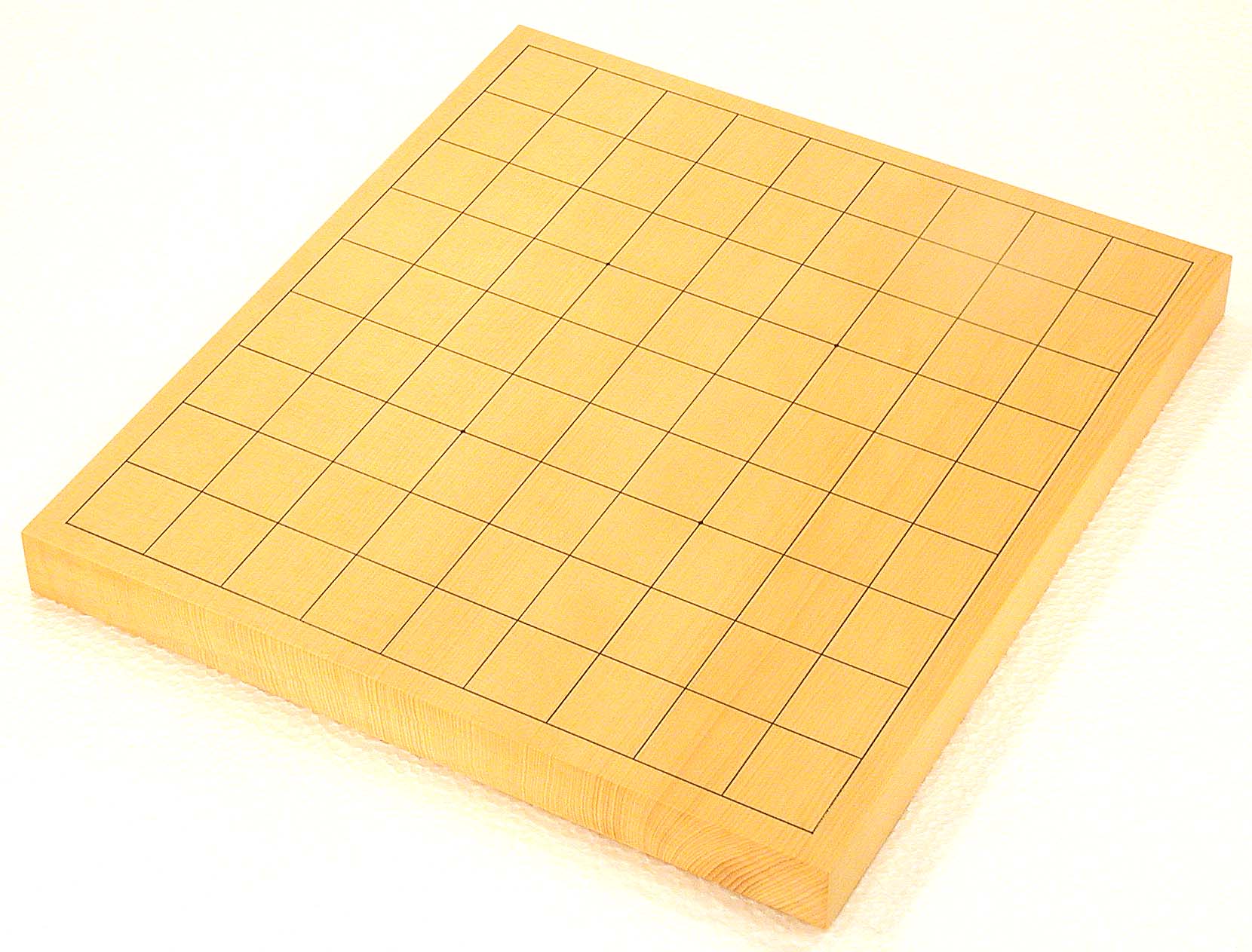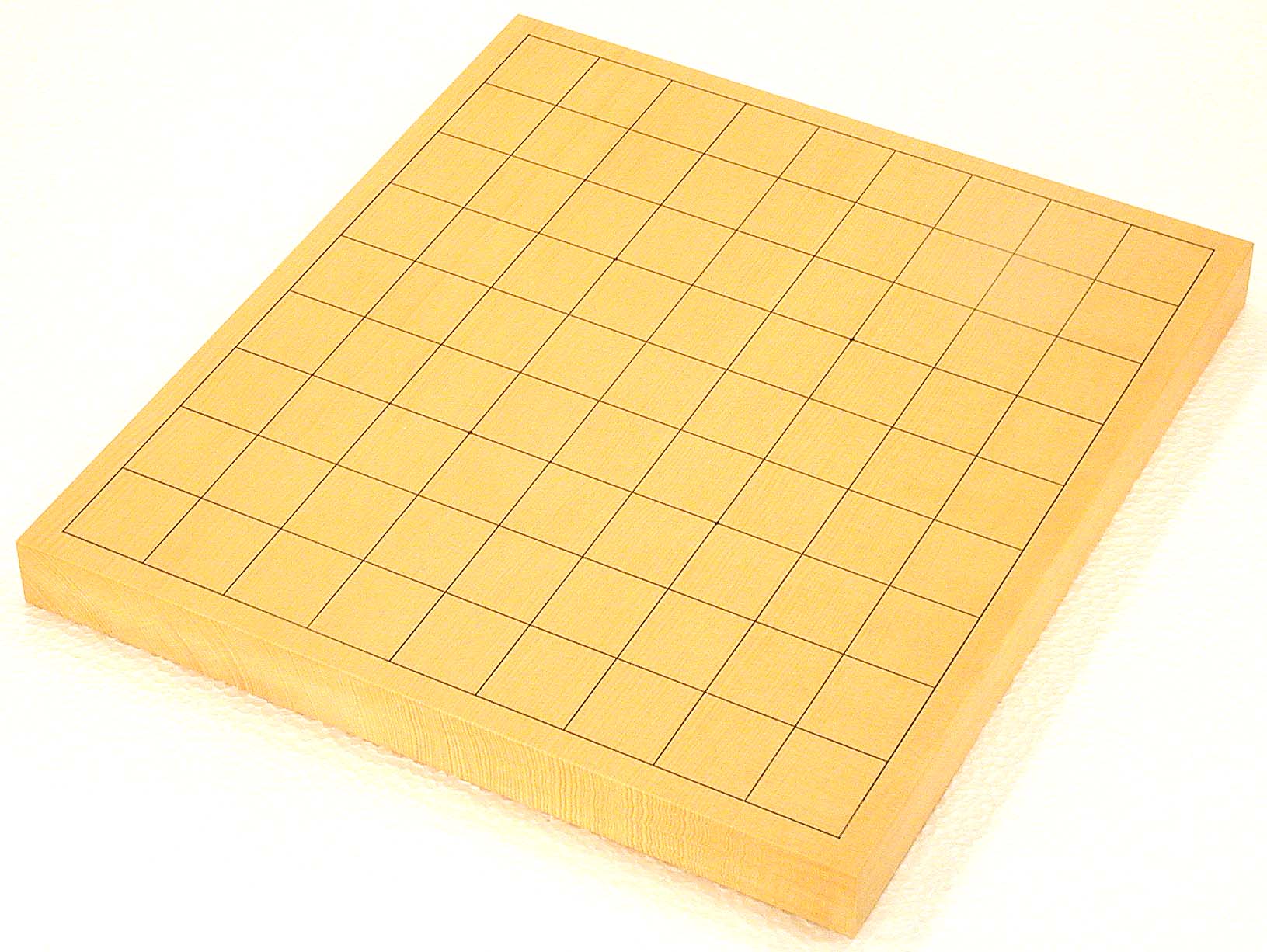 No.596:Torreya nucifera (KAYA) Table Shogi Board, 1-sun (3 cm thick of the board) Basic grain descriptions and types include: "MASAME" straight - grain which runs in a single direction, parallel to the axis of the tree. This is some pieces composition board. The most valued boards are made from "kaya", which is a mellow yellow. Front |