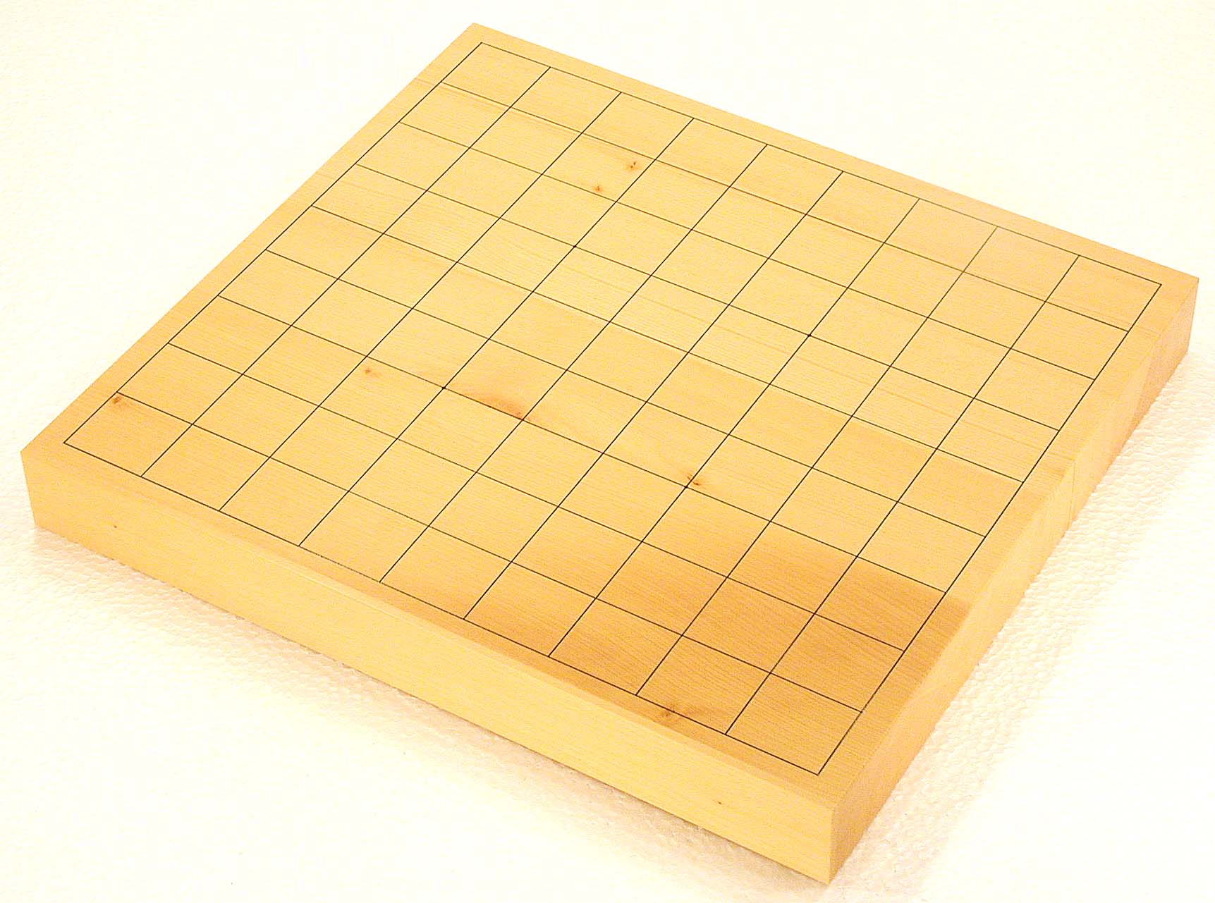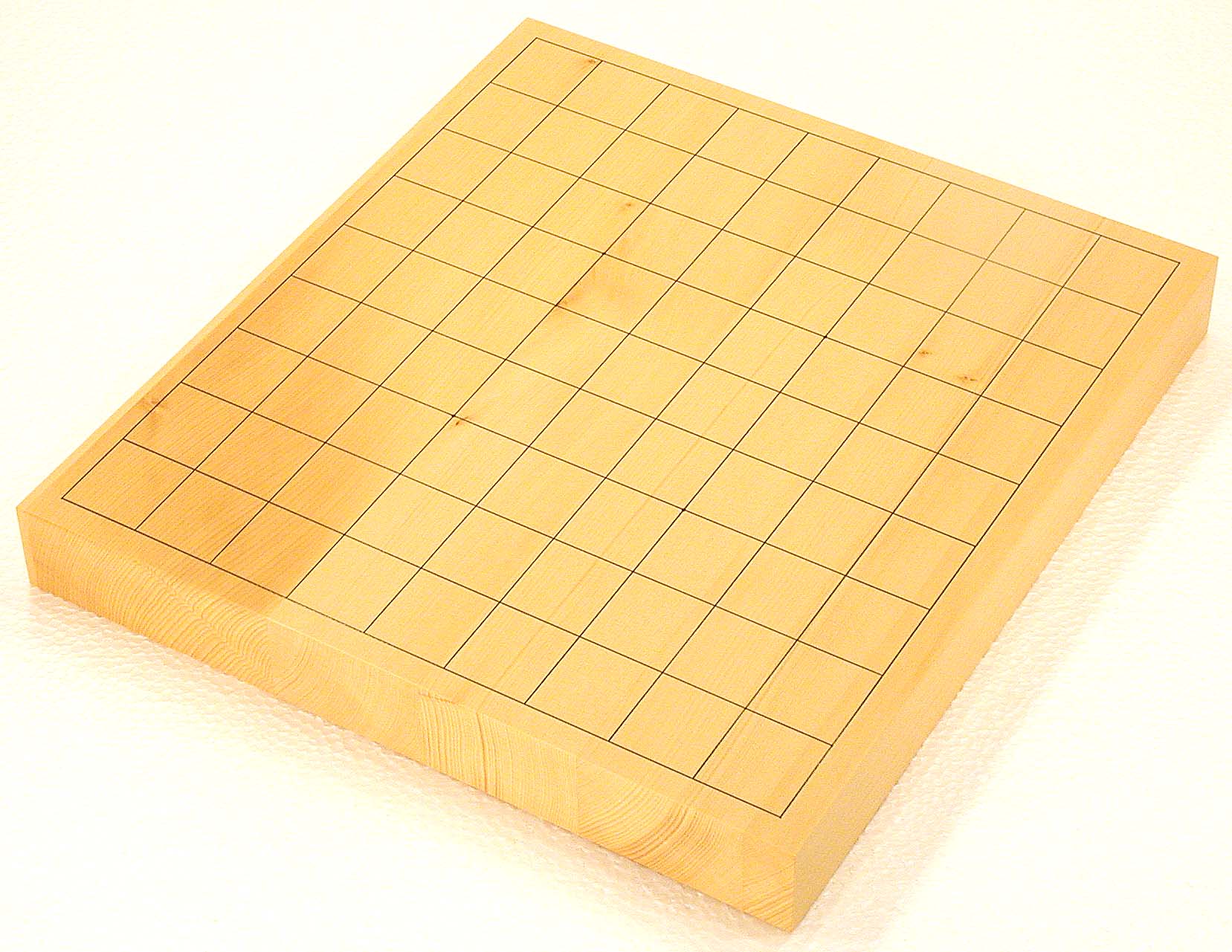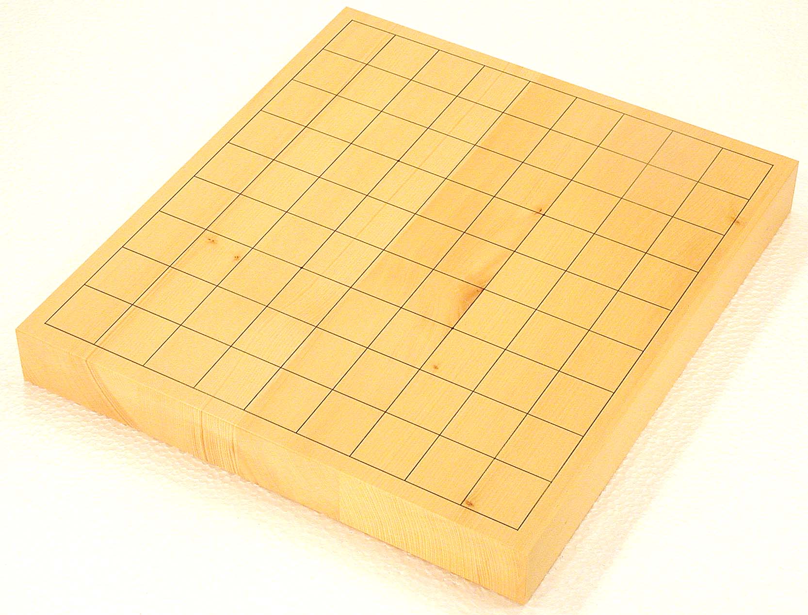 No.598:Torreya nucifera (KAYA) Table Shogi Board, 1-sun 4-bu (4,3 cm thick of the board) Basic grain descriptions and types include: "MASAME" straight - grain which runs in a single direction, parallel to the axis of the tree. This is some pieces composition board. The most valued boards are made from "kaya", which is a mellow yellow. Front |