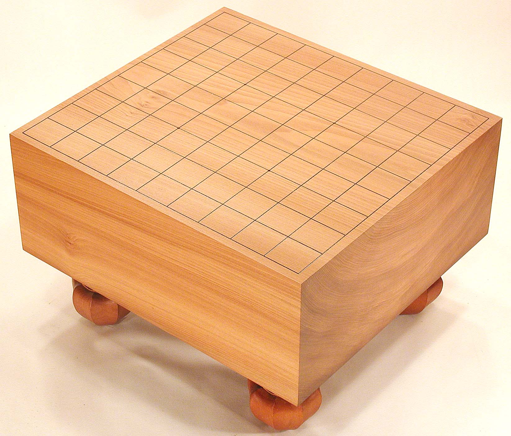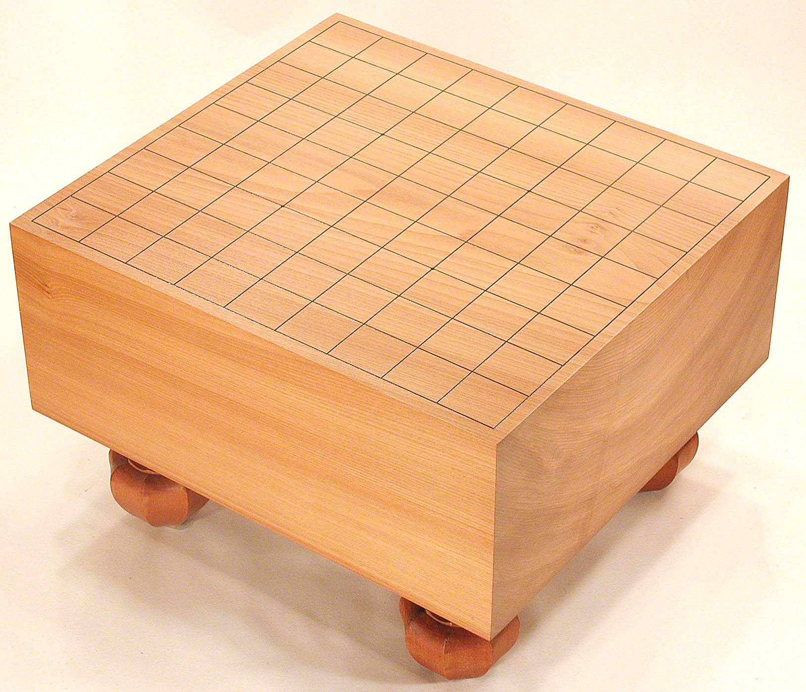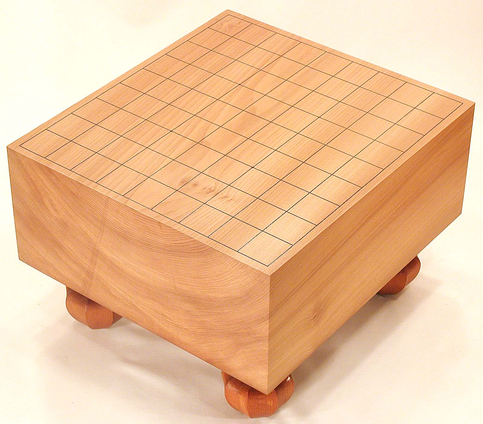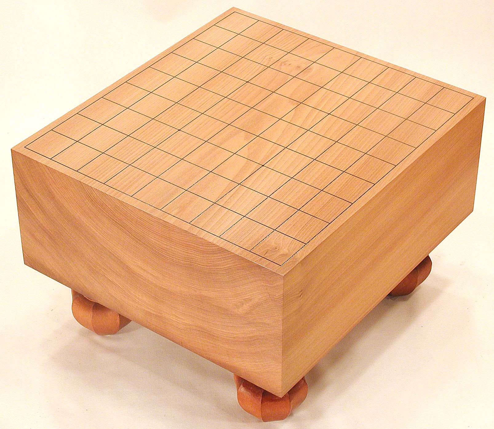 Cercidiphyllum (KATSURA) Size 5-sun (approx.15cm thick of the board) Note: "SUN" is an old Japanese scale unit. 1sun = approx. 3cm. A wooden floor board with legs is the most traditional, elegant, and expensive of all boards. Historically, to play on these boards,the Japanese would sit on tatami mats. Price: 75,000 JPY |