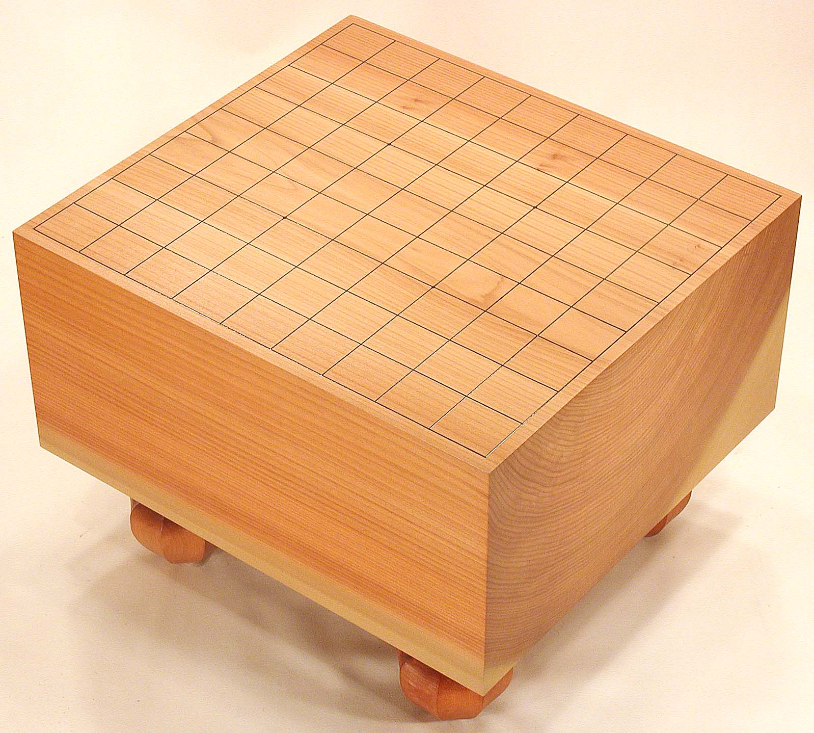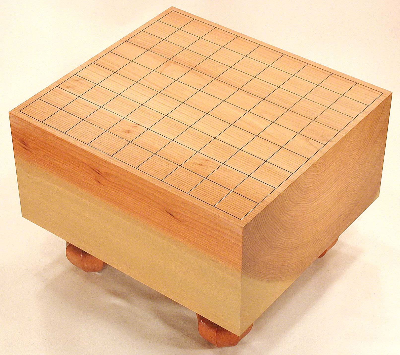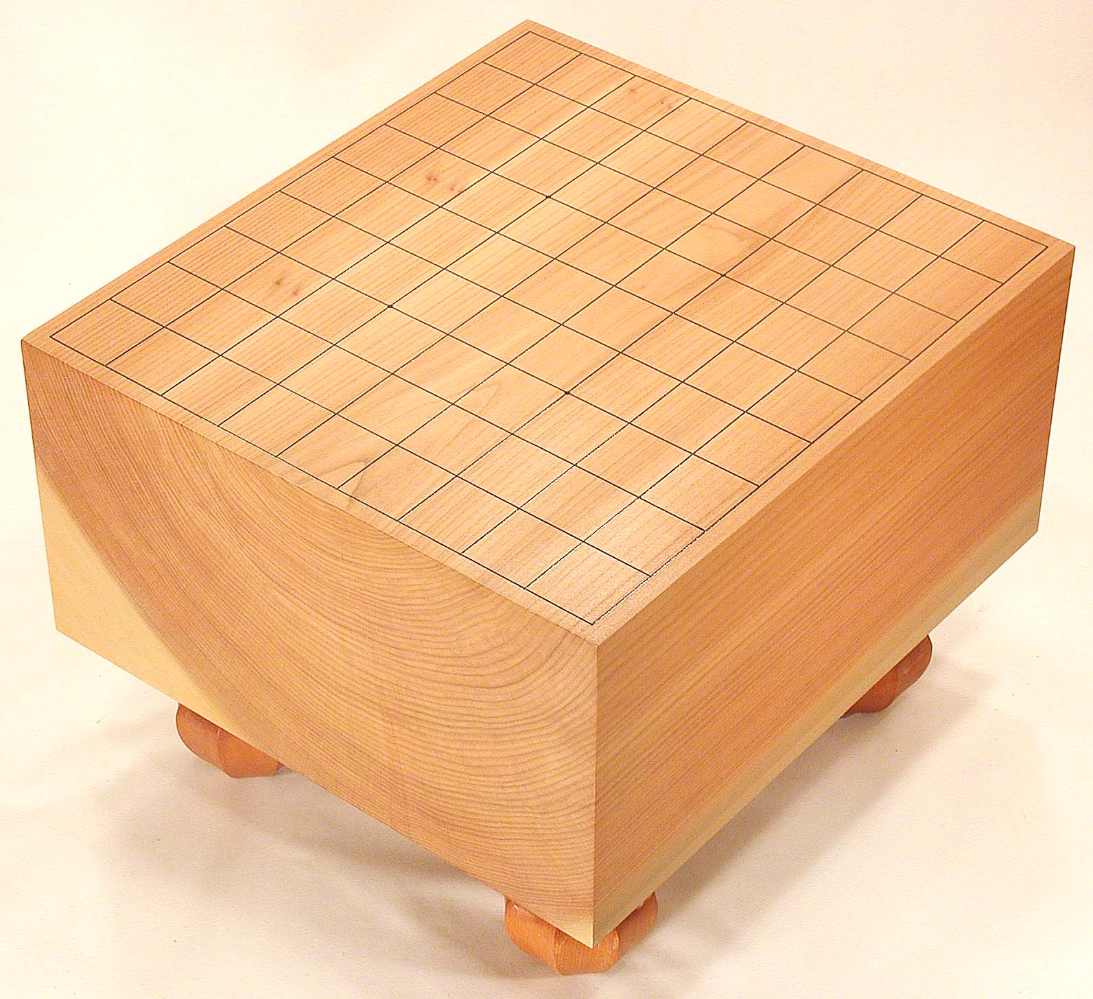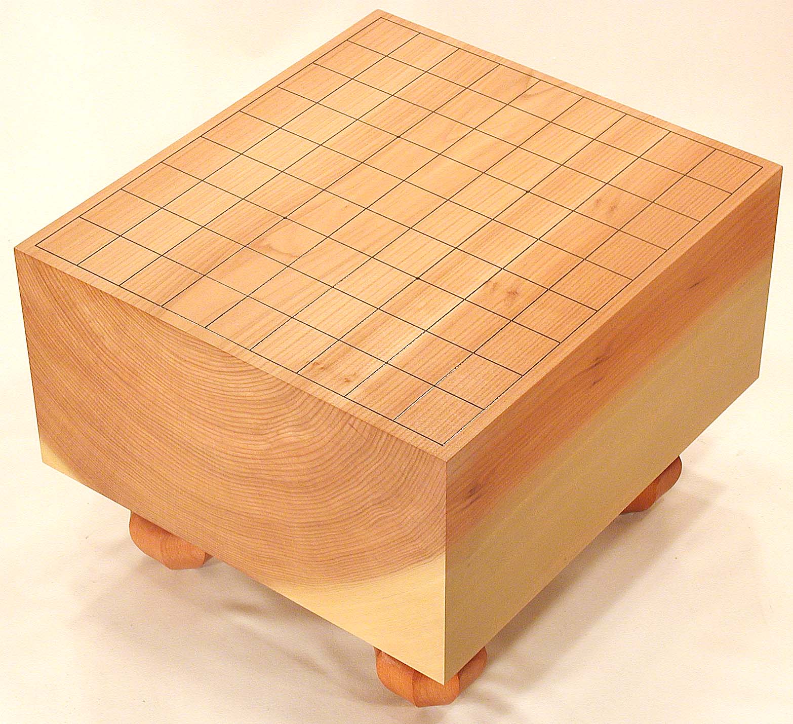Cercidiphyllum (KATSURA) Size 6-sun (approx.18cm thick of the board) Note: "SUN" is an old Japanese scale unit. 1sun = approx. 3cm. A wooden floor board with legs is the most traditional, elegant, and expensive of all boards. Historically, to play on these boards,the Japanese would sit on tatami mats. Price: 85,000 JPY |