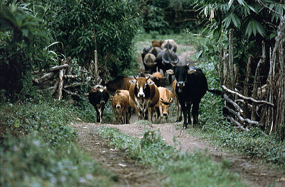 夕方になると、牛達も村に帰ってくる。