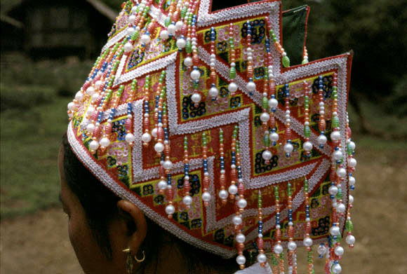 沢山のビーズが付いた王冠のような帽子。