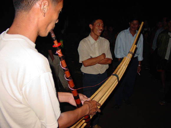ケーンを演奏する村の男。今では演奏できる人も減ってきてると言う。