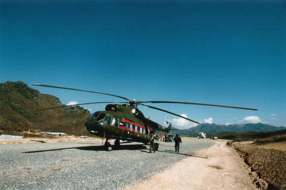 サイソンブンの空港。手前に止まっているのは軍のヘリ。