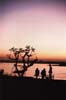 夕暮れ時、人々はメコンに沈む夕日を見に川沿いに集まってくる。