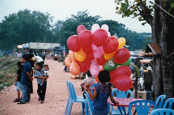 風船を売る少女も仕事を忘れて、しばしレースに見入る。