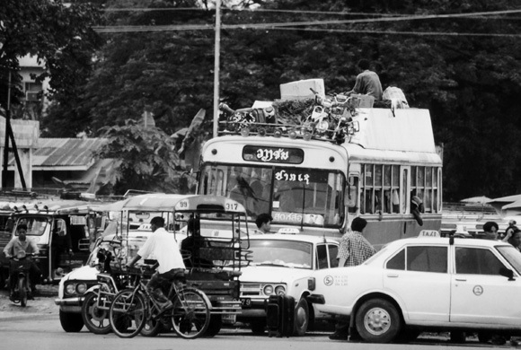 雑多なものが走るヴィエンチャン、タラート・サオ前。