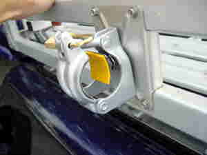 4.スコップを押さえる金具にラバーを貼りスコップに傷がつくのを防止します。