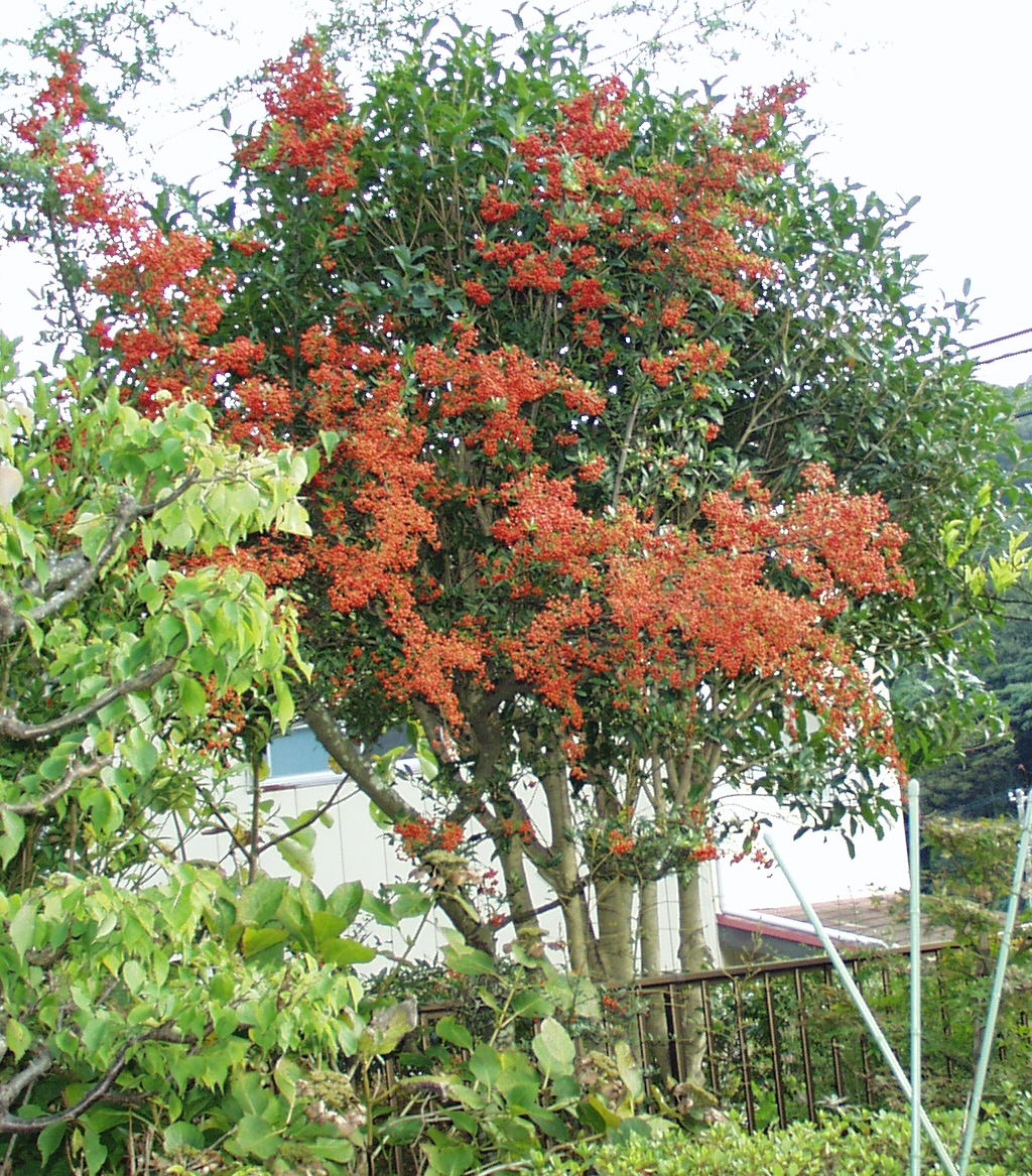 上及び右の写真 ピラカンサ 横須賀市長沢 農地の中の民家の庭 2003.10.19 |