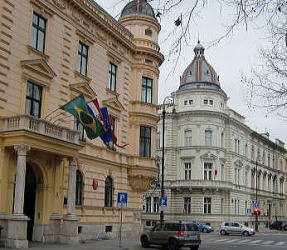 ザグレブはクロアチアの首都なのですが、首都の空港とは思えないのどかな所で驚きました。直ぐにバスでスロベニアへ移動。一応出国・入国のパスポートコントロール(机一つずつ)もありました。リュブリャナのダウンタウンにホテルがあり、夕食まで休憩でしたから、夜出かけるつもりだったので時間を惜しんで下見しました。