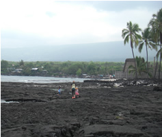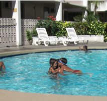 | ▲ワイキキビーチでカニ探し | ▲ダイヤモンドヘッドをバックに | ▲大木の下でブランコ |