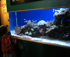 | ▲水族館入口 | ▲珊瑚礁を見る健介 | ▲うつぼの類い |