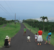 | ▲頂上からワイキキビーチ方面 | ▲登頂後のご褒美のキャンディー | ▲揃って記念撮影 アロハー |