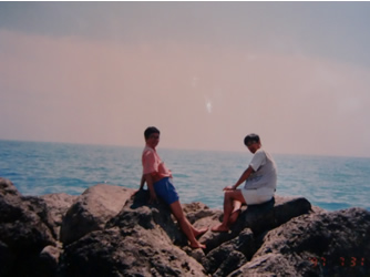 | ▲サン・レオーネのビーチで泳いだ | ▲ビーチの岩場で。ここは地中海 |