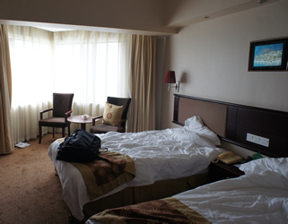 | ▲蘇州のホテル出発前(右の絵画に注目↓) | ▲個人旅行なら絶対泊らない?豪華ホテル(WYNDHAM上海) |
