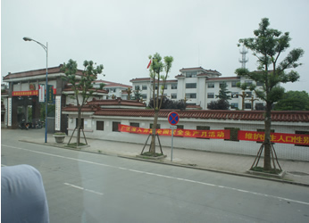| ▲杭州→上海への車窓から。共産党の建物・スローガン | ▲上海中心部で塾の宣伝。マン・ツー・マンかな? |