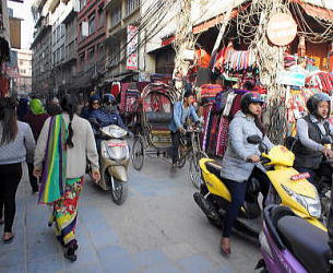 | ▲地震倒壊、修復中のダルバール広場 | ▲近くの寺院とダルバール広場 |