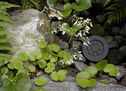 蹲の脇に咲いた大文字草