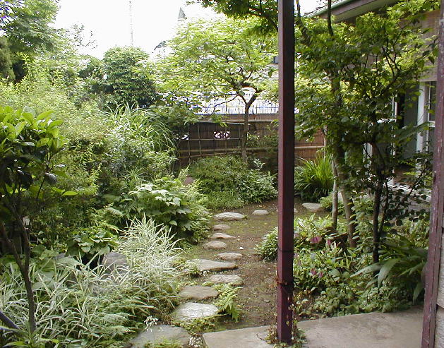 玄関先から庭を望む