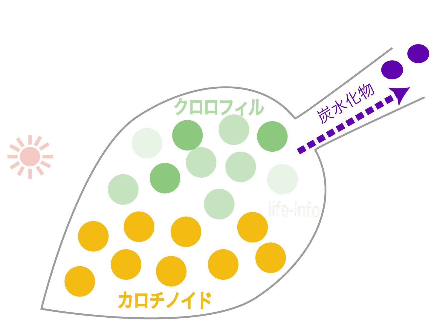 葉には「クロロフィル」という緑の色素と「カルチノイド」という黄色の色素が含まれていて、