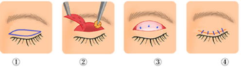 皮膚が厚い人は、右のように眉毛の下で余っている皮膚を切り取るという方法もあります。