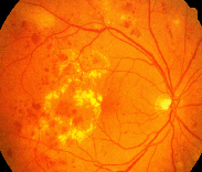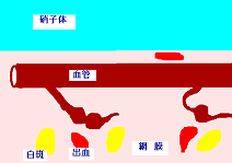 下に書きました。左図が単純網膜症、右図が増殖網膜症です。