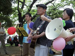 ![]() ▲5月3日、「憲法まつり&ピースパレード」 震災にかこつけた改憲の動きに注意を(登戸三角公園) |