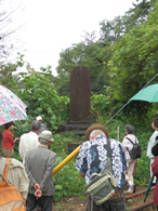 ![]() ![]() ▲8月21日、登戸研究所見学会(左)と講演する山田朗(明大教授)氏(右) |