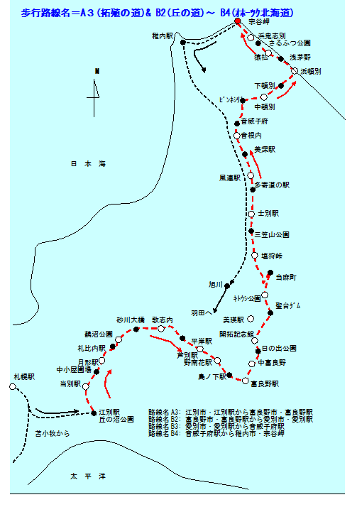 <北海道自然歩道・南北縦貫>A3&B2〜B4 江別市から宗谷岬