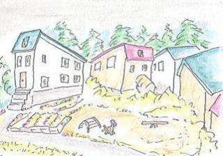 | 納屋や牛小屋は開拓時代の板壁や円形屋根だが、住居はトタン屋根で南側に大きな窓を持つ。比較的新しい家が多いのも歴史的な背景だろう。 どの家も 切妻屋根に 樋はなく 高床式は 積雪対策 |