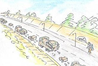 トラックと異なる騒音に振り返ると、周囲を圧して自衛隊の車列が通過。散歩のオジサンへ聞いたら「滅多に通らない」とのこと。北海道の一面を見た気がした。 早朝に 十数台の 迷彩車 眠気を覚ます 積み荷のタンク車 |