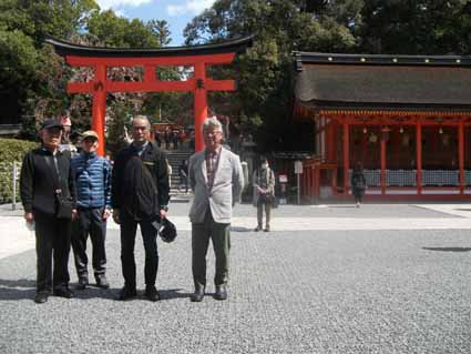 今日は始めて御参加の岩浅氏を加えて男4人による伏見稲荷および京都散策となった。現在コロナウィルスの流行で外人さん得に中国と韓国の観光客は皆無となっており伏見稲荷もひさしぶりに本来の姿をとりもどしていた。いつものとおり山頂の1ノ峰の参拝をすませ、ゆっくりできそうな岩倉方面にむかうことにした。岩倉具視幽棲旧宅には新田氏と芝坂氏それぞれ1回づつきており私は3回目。当時は(財)岩倉公旧跡保存会の所有であったがいまはそこから京都市に寄付されている。昔は畳には上がれなかったように記憶しているがいまは中にあがれておまけにボランティアガイドのおじさんがついている。すごく親切に説明してくださるが、私の感想は以前のほうが落ち着いて維新の頃の面影を深く感じられたように思う。