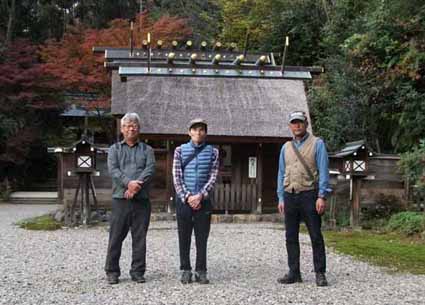 2回目の藤本氏にくわえ始めて稲荷御同行いただいた堀本氏との3人旅となった。稲荷はあいかわらず外人さんばかりがめだちごったがえすなかなんとか頂上へ。藤本氏は西成から石切まで週2〜3回あるいておられるのでものすごい健脚、堀本氏もやせておられるので楽に登坂。私はついてゆけずお二人には御迷惑をおかけした。稲荷はこんでいるので三条にて食事をし、穴場である日向太神宮へ御案内することにした。案の定ここは人陰もまばらで紅葉を独占している気分にさせられた。ここは以前も大勢でおとずれていたが、あいかわらずしずかでおごそかであるうえに愛想のよい巫女さんがおみくじほひいただけなのにていねいに接してくださいました。