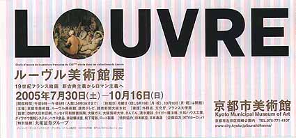 今日もまた先月に引き続き着替えまでずぶぬれになるほどの暑さではあったが、こころなしか蝉たちの合唱もやわらかくきこえ夏が好きなわたしにとっては、すこしさびしくかんじられた。今回は先月はいりそびれた「ルーヴル展」に閉館1時間半前ぐらいにたどり着けるように計画をたてた。美術館へいく前に訪れた藤森(ふじのもり)神社は伏見に近いのにいまだ行ったことがなかったのはふしぎなことであった。ここには(世の中に二つとないすばらしい水)という意味の「不二の水」というのが本殿の向かって右に湧き出ておりペットボトルを手にその水をくみにくるひとがたえなかった。私も一口いただいたが無味無臭であるがまろやかな印象であった。この神社は下鴨神社に似た賭け馬神事でしられており、そのために長く広い参道が確保されている。ルーブル美術館展はもう口ではいいあらわされないほどすばらしいものでありなんといっても名画をこちらの息がかかるほどそばでみられるように展示されているのには本当に満足できるものであった。展示作品は日本の江戸時代末期の時期に製作されたものに限定されていたが、じっと絵をみていると其の時代のその場所で其の国のひとたちが現在まさに存在するようなまたさらに自分もその時と場所にいるような錯角さえおぼえる。どちらかといえば私は絵は所詮写真にかなわないだろうとおもっていたが、絵は風景や人物が作者の心のフィルターをとおしてでてくるので写真以上にリアルなことがあるということがわかったのは今回の収穫であった。逆にいえばいくら描画の技術があっても作者の心が感じられない絵はそれこそを駄作というのであろう。