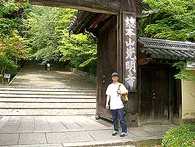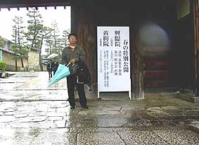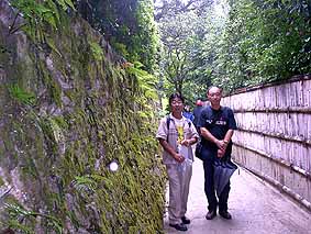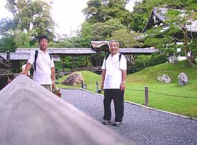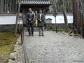 気持ちよく晴れたこの日は阪南高校後輩で材木仲間の芝坂氏がつきあってくれた。彼は稲荷で私が立ち寄るところは必ず拝んでおられるがその他のところは一切いかない。別に好きに拝めばいいのであるがおもしろいおかたである。ひさしぶりに連れがあったので、気持ちよく遠出してみようと考え、かつて大覚寺へいこうとおもって間違えてバスにのり近くまで行ってあわててタクシーでひきかえした鈴虫寺周辺にむかった。さすが三条からは遠くてバスに50分ゆられて苔寺に到着。苔寺は事前にはがきでの申し込みをおこない拝観券を取得しなければいけないしくみになっているので、なかなかいくことができない。バスをおりてすぐ前にかぐや姫竹御殿がありまずそこへ。そこは10分ぐらいで拝観を終え鈴虫寺へむかうが、事前の知識なしにいってみたが凄くラッキーであったらしい。門前で5分くらい並んでまったが、普段の休日は1時間以上まつことはざらにあるらしい。さすがに人気のあるだけあって御住職のお話はすごくおもしろくついつい鳴いている鈴虫の声がきこえなくなるほどであった。ぜひみなさんいってみてください。私はもう一度いきたい。人込みの鈴虫寺をあとにして、すぐそばの地蔵院(竹の寺)へむかったがここはほんとうにさきほどの場所に近いのかとおもわれるほど拝観者は少なく、ほとんどの時間われわれ二人きりであった。苔寺の苔は有名なのはいうまでもないがここの庭園の苔も劣らず立派であり、穴場として絶対おすすめである。写真は地蔵院の入り口であるがバックにみごとな竹の林があるのがうつっています。