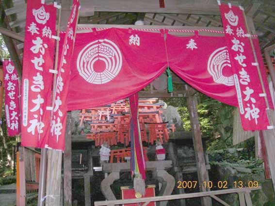 先月紹介した御剱社から急な石段を1分ぐらい下ったところに薬力社がある。その神々の中に「おせき大神」がいらっしゃる。ここは親しくおせきさんとよばれ数多くの参拝者に広く信心されている。おおくの参拝客があるにはそれだけのわけがある。この「おせきさん」はとくに胸の病や咳の出る病にすごく霊験あらたかで、参拝者のお礼の手紙がたえることがないのである。