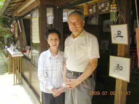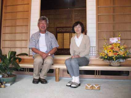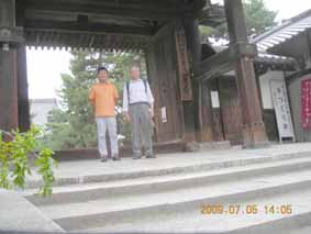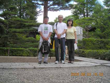 この日は雨の降る確率の高い予報であったので芝坂氏は傘をもってこられた。私は降らないという個人的予想で傘はおいてきた。結果雨はふらなっかったので、負け惜しみの強い芝坂氏は杖になって楽だとか、女性のように日傘にしてみたりとかいろいろ抵抗しておられた。いつもながらおもしろいおかただ。それがいいところであろう。さて大徳寺は私は以前3回きているとおもう。いつも一人であった。こんかいは拝観がまだであった大仙院に御夫妻も同意してくださったので、いってみた。大仙院は何人かお客があつまると不定期にガイドがついて分かりやすく説明してくれる方式になっているらしい、しかしよく観察してみるとガイドによって説明の時間もポイントもすこしちがっているようであった。我々が受けたガイドさんはちょっと簡略なほうだったかもしれないがおもしろいおばさんでガイドの途中ここの御住職が若いとき都蝶々さんとテレビ出演をしておられたときの写真をみせたあと、おわりにその御住職本人がまちうけている場所につれていった。そこは土産物売り場であったがそこで御住職みずからが御自分が執筆した本や色紙をうっておられたようにみえたのでちょっとびっくりした。やはり気の弱いわれわれはつい買ってしまった。しかし買った品物には御住職の尾関宗園師みずからわれわれの名前をかいてくれてその横に花押をかいてわたしてくれたのでただの売店の坊さんやおばさんから買うのと違ってよき一期一会をいただき買ってよかったというきもちになった。これってのせられたのだろうか?いやいや何も買わなかったほうが後悔したとおもう。