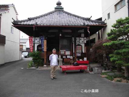 ひさしぶりに材木屋の仲間で友人の芝坂氏がお稲荷さん参りにおつき合いくださった。芝坂氏はついさきごろ永年やってこられた材木屋を円満に廃業されてお世話になったお稲荷さんへ報告いたしたいという意向で今回の御同行となった。井川君のほうはもともとお稲荷さん参りは二の次であるため昼からおつき合いということになった。芝坂氏は最初から昼過ぎまでという予定であったが井川君は昼ビールを飲んだあと歩くのはしんどいといって芝坂氏と一緒に帰ってしまった。それで残された私は独りで京都を散策することになった。とりあえず行き先は決めずに川端通り三条でたまたま来たバスにのってみた。行き先はわからなかったがある程度のっていると二条城についたのであまり遠くはなれると帰るのが大変なので下車した。二条城の門前を歩きながら「通称寺巡拝の栞」をみてこぬか薬師さんと布袋薬師さんにいくことをきめた。こぬか薬師さんでは巡拝のシールと御住職手作りの小さな陶器を300円にて購入、布袋薬師さんへむかった。