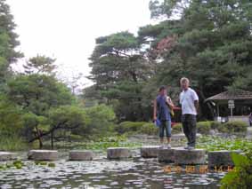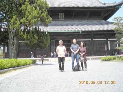 ちょうど去年9月宝ケ池に二人でいった以来1年ぶりに新田氏がおつきあいくださった。今回は氏の中国人の義理の妹さんが御夫婦ではじめて日本をおとずれるということで京都を案内するシュミレーションをかねていた。彼がかんがえた今の構想ではまず三十三間堂とその周辺あとバスで清水寺から高台寺そして平安神宮、最後金閣寺というコースである。最も観光客の多い嵐山はかなりあるくことになるので今回はパスということになった。さて今日であるが稲荷頂上より薬力からまた直接東福寺方面にでた。本来人っ子一人歩かない道を若い女性がカメラで周囲をかなり先でとっておられた、我々が来たので前を歩き出されたが普通に歩いても追いついてしまった。そこがまた一人あるくのがやっとのせまいところだったので、おいこせなくてきまずかったので、「こんなとこ一人でこわくないの」と声をかけた。おいついてきたあんたらが恐いんだという顔はしなかったが、さっき女性にあったのでほっとしたとのこと。彼女も東福寺駅にあるいていくところであったが、我々おっさん二人は東福寺境内に少しよってみた。お昼は京都駅でといってみたが駅ビルもポルタもどこの店もすべて満員で表で何人も待っている状態であった。新田氏はまってもよいという感じであったが私はゆっくり食事をしたかったのでさびれていそうな京都タワーを提案した。いってみると案の定ほとんどの店が空席がめだった。そこでゆっくり食事することができた。味をうるさくいわねば京都タワー食堂街は穴場である。平安神宮は何度もおとずれているが、その庭園である神苑ははじめてであった。ここはすばらしいというほどではないが、デートコースではある。しかし退屈であるため始めてのデートのカップルには不向きである。